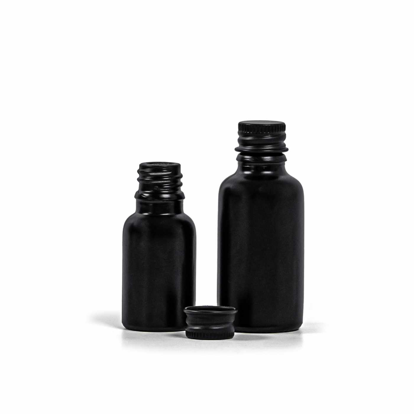 Flacon en verre noir mat, bouchon en aluminium noir, 30 ml