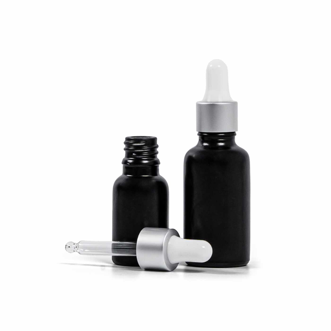 Compte-gouttes en verre en combinaison blanc/argent mat, adapté aux flacons avec un diamètre de col de 18 mm et un volume de 15 ml.Longueur du tube en verre : 56 mmMatériau : verre, silicone, aluminium, plastique