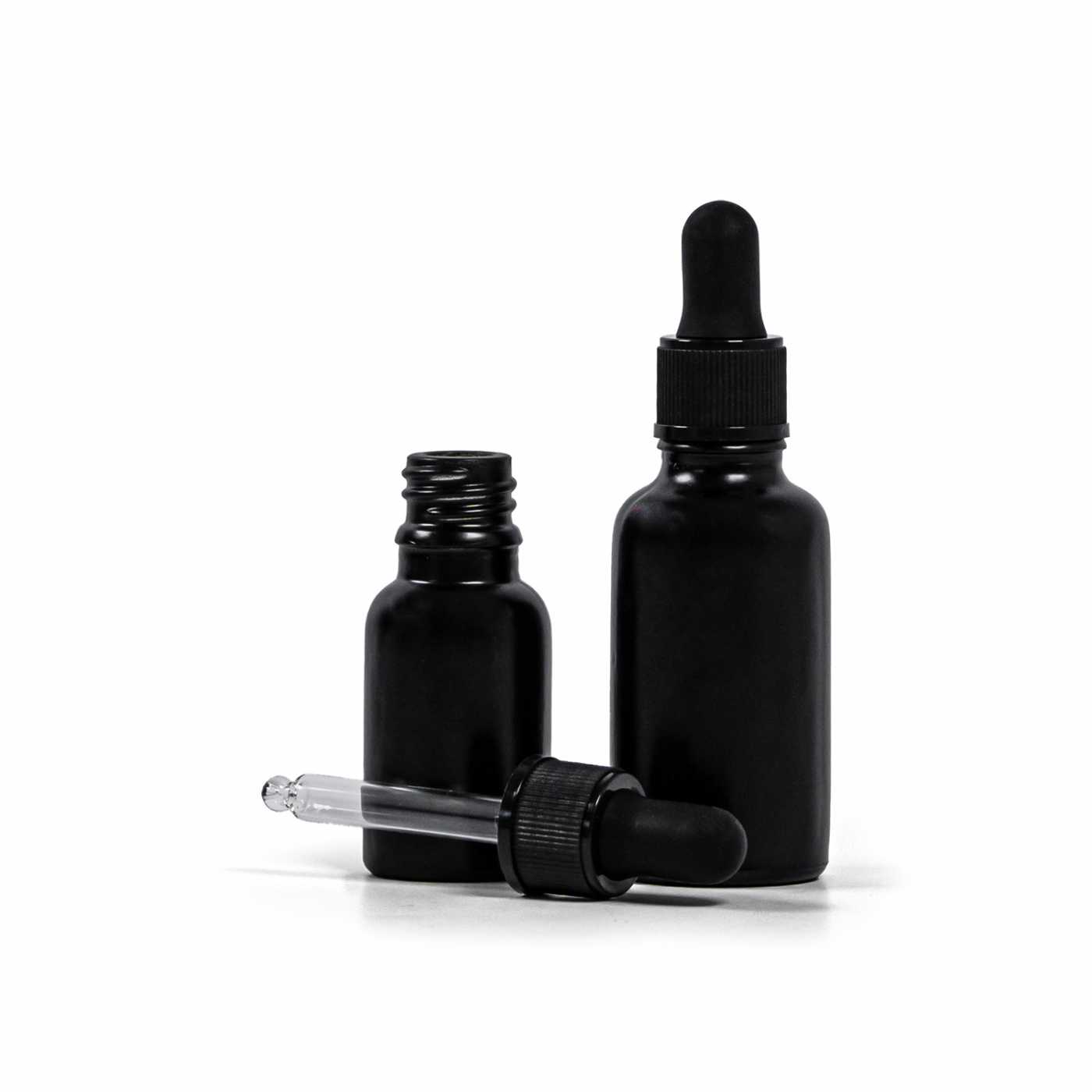 Flacon en verre noir mat, compte-gouttes noir mat, 30 ml