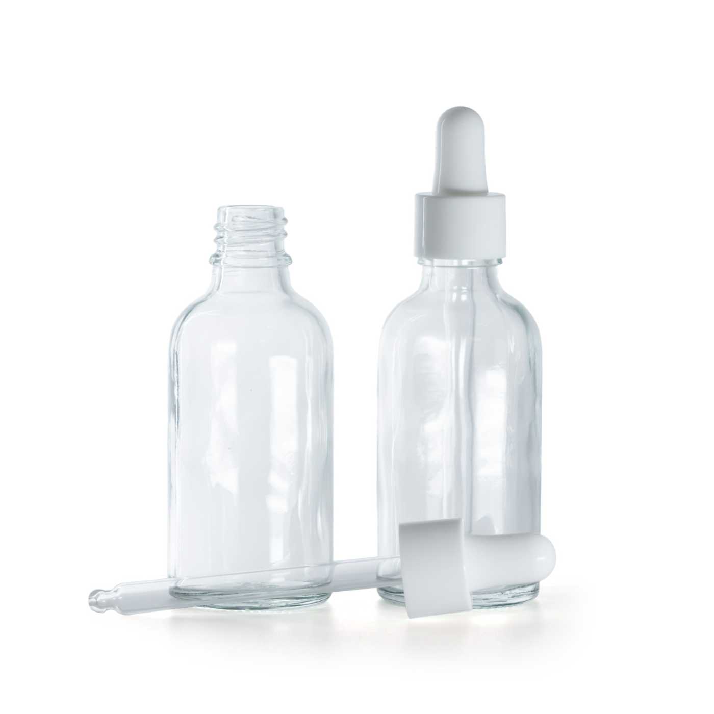 Flacon en verre transparent avec pipette blanche brillante, 50 ml