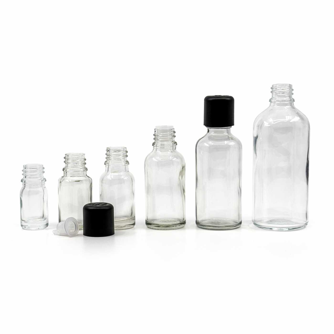 Compte-gouttes en plastique pour flacons en verre, 18 mm, court. Se place dans le goulot du flacon.