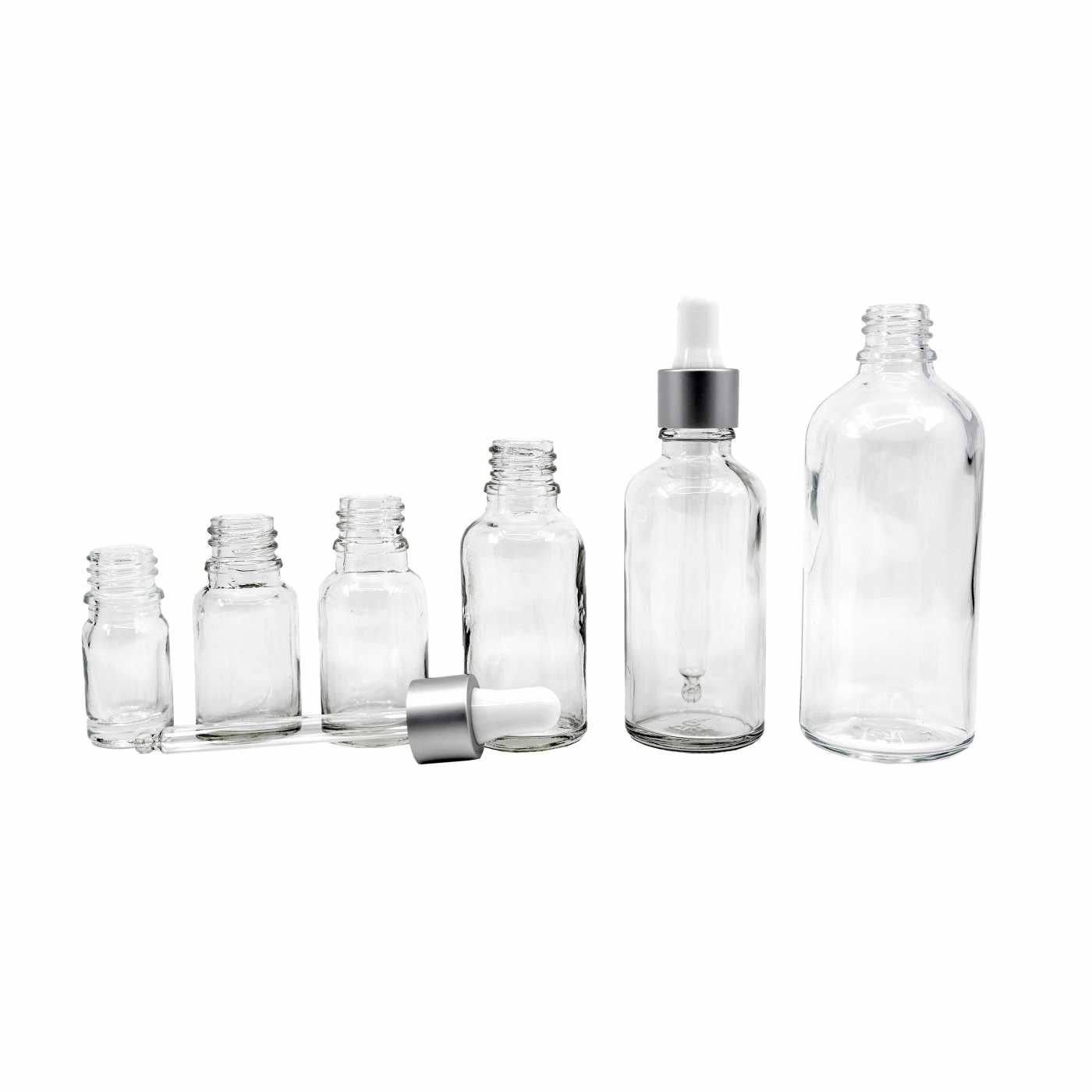 Compte-gouttes en verre en combinaison blanc/argent mat, adapté aux flacons avec un diamètre de col de 18 mm et un volume de 15 ml.Longueur du tube en verre : 56 mmMatériau : verre, silicone, aluminium, plastique