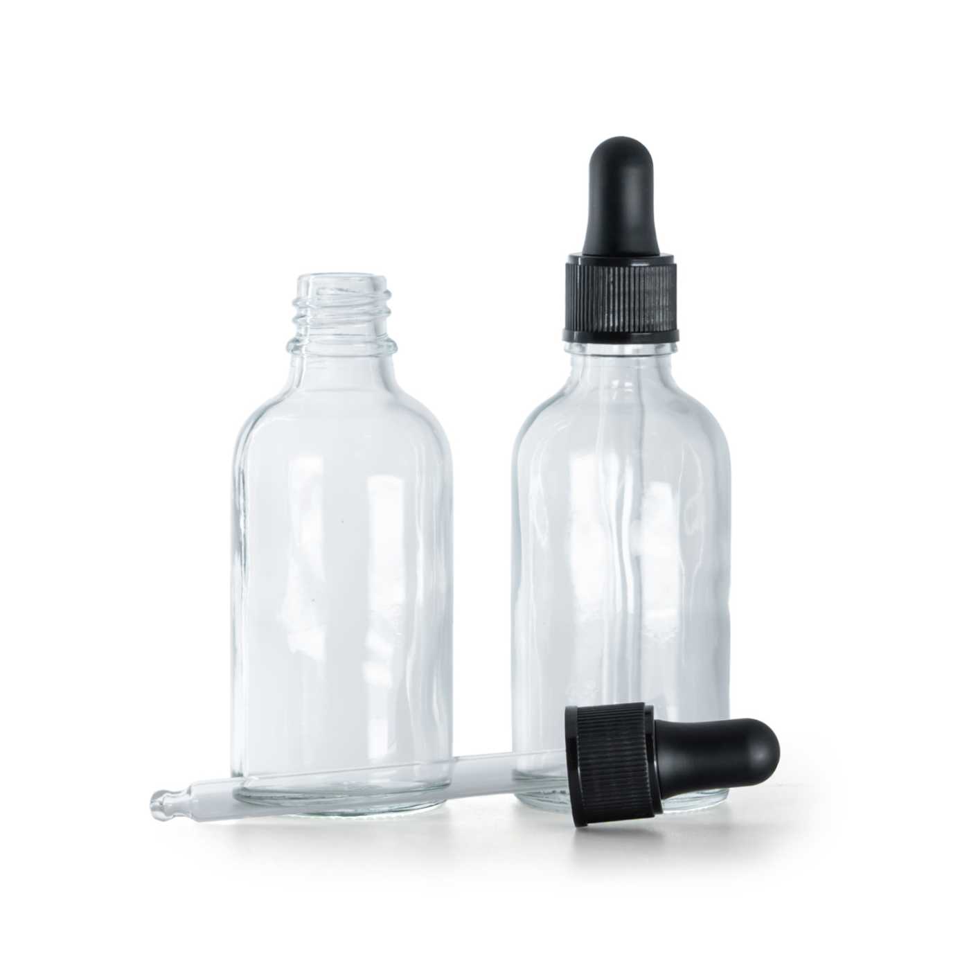 Flacon en verre transparent, compte-gouttes noir mat, 30 ml