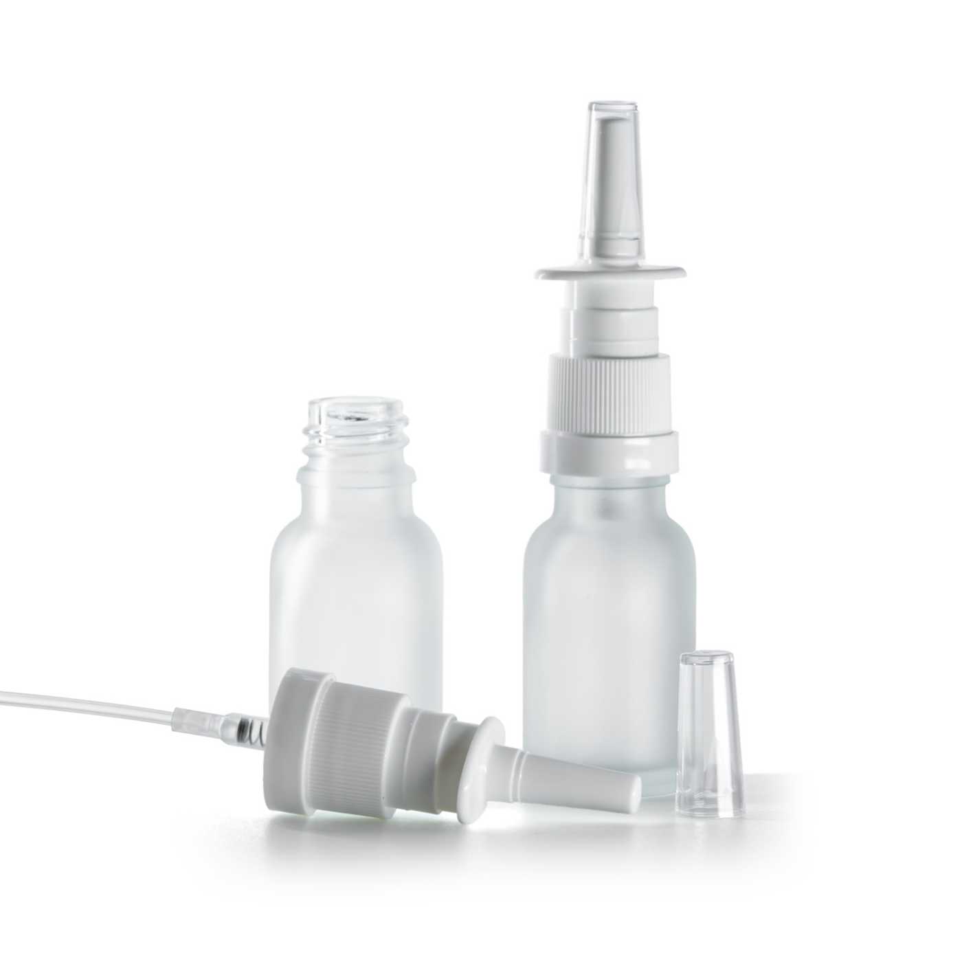 Flacon en verre transparent dépoli, spray nasal, 15 ml