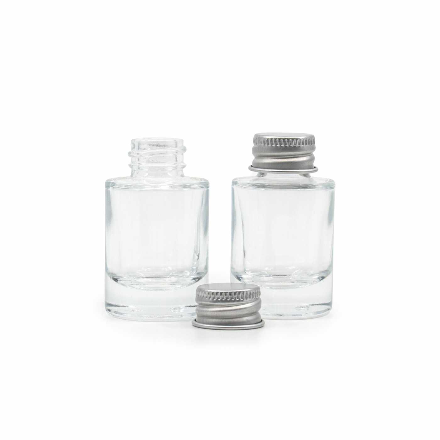 Flacon en verre transparent, fond épais, bouchon en aluminium argenté, 10 ml