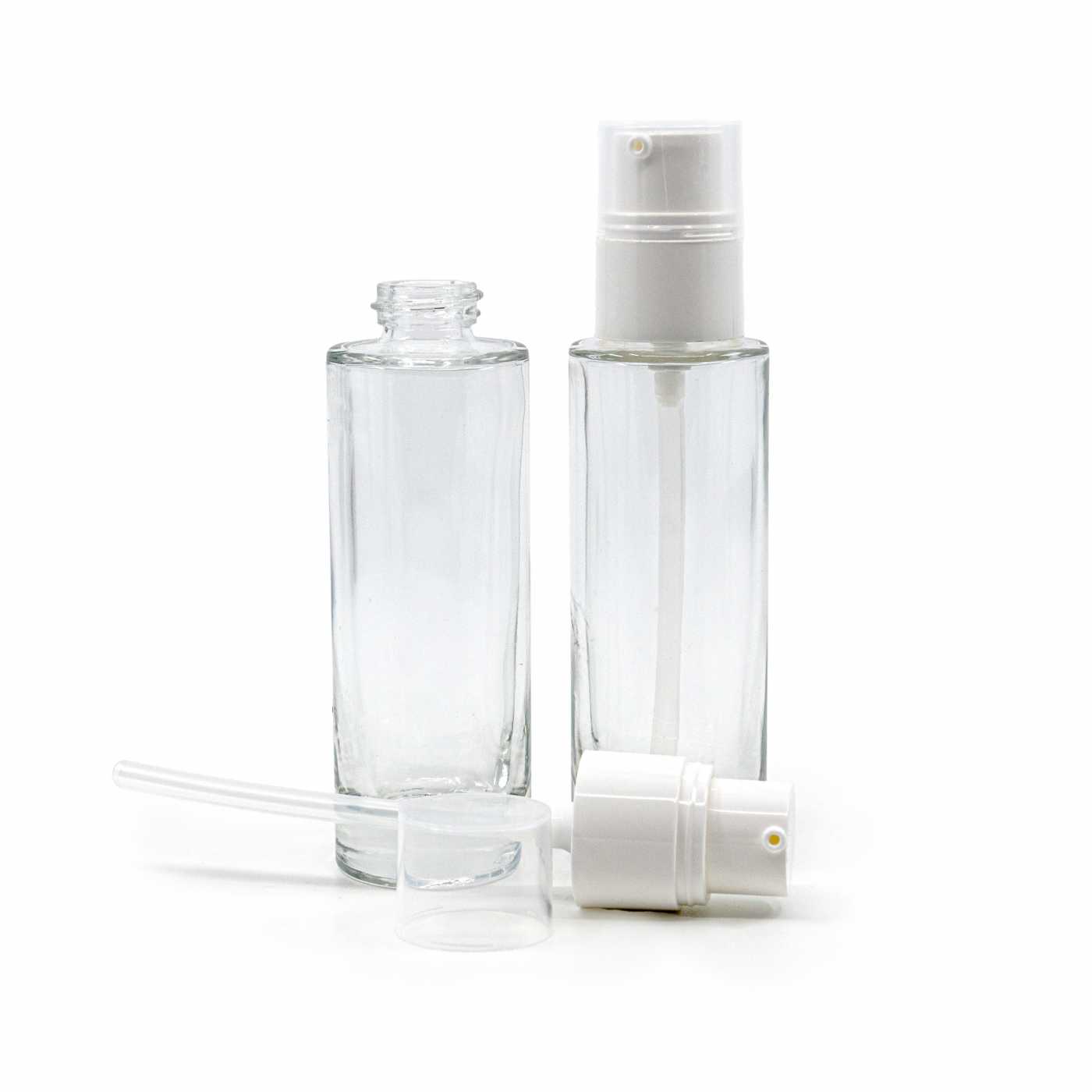 Flacon en verre transparent, pompe blanche, 18/400, 30 ml