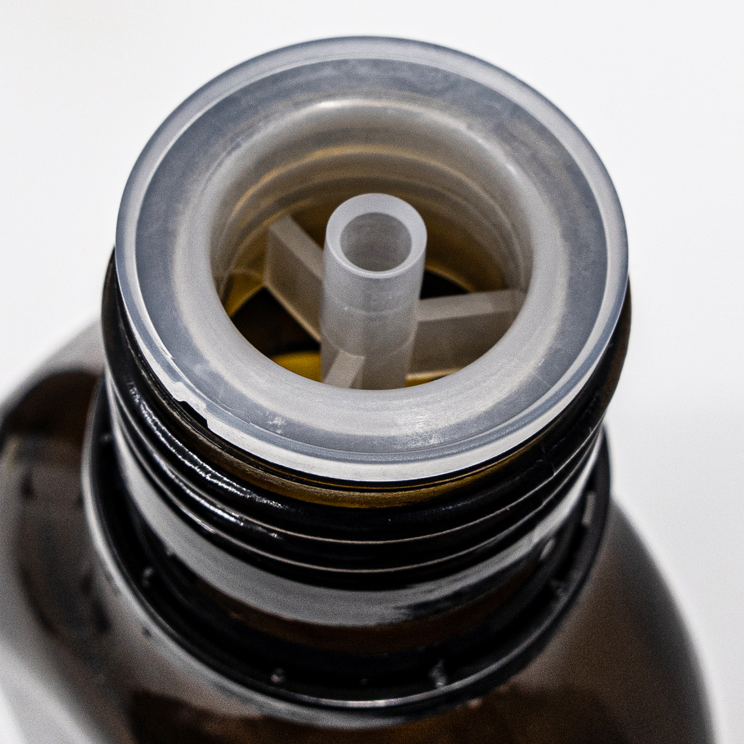 Flacon rond Boston en verre ambré, PP28, bouchon noir avec réducteur compte-gouttes, 250 ml