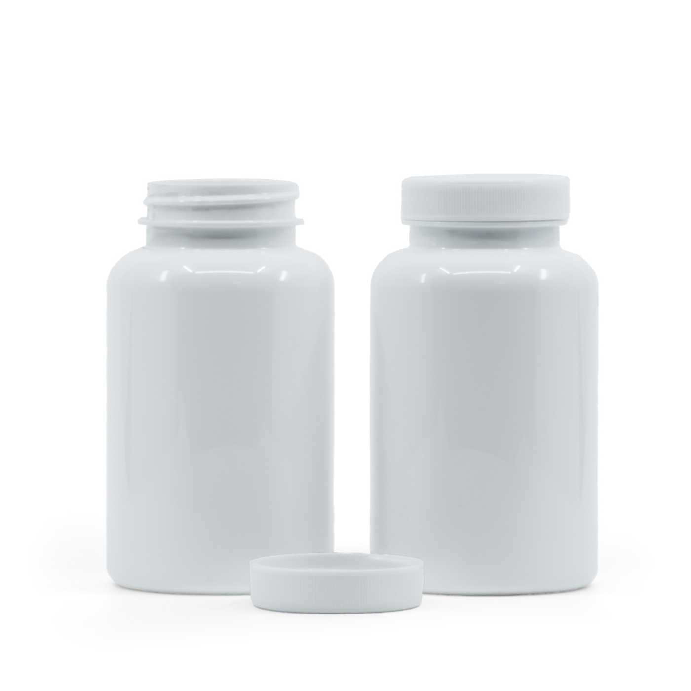 Pilulier en plastique blanc avec couvercle blanc, 250 ml