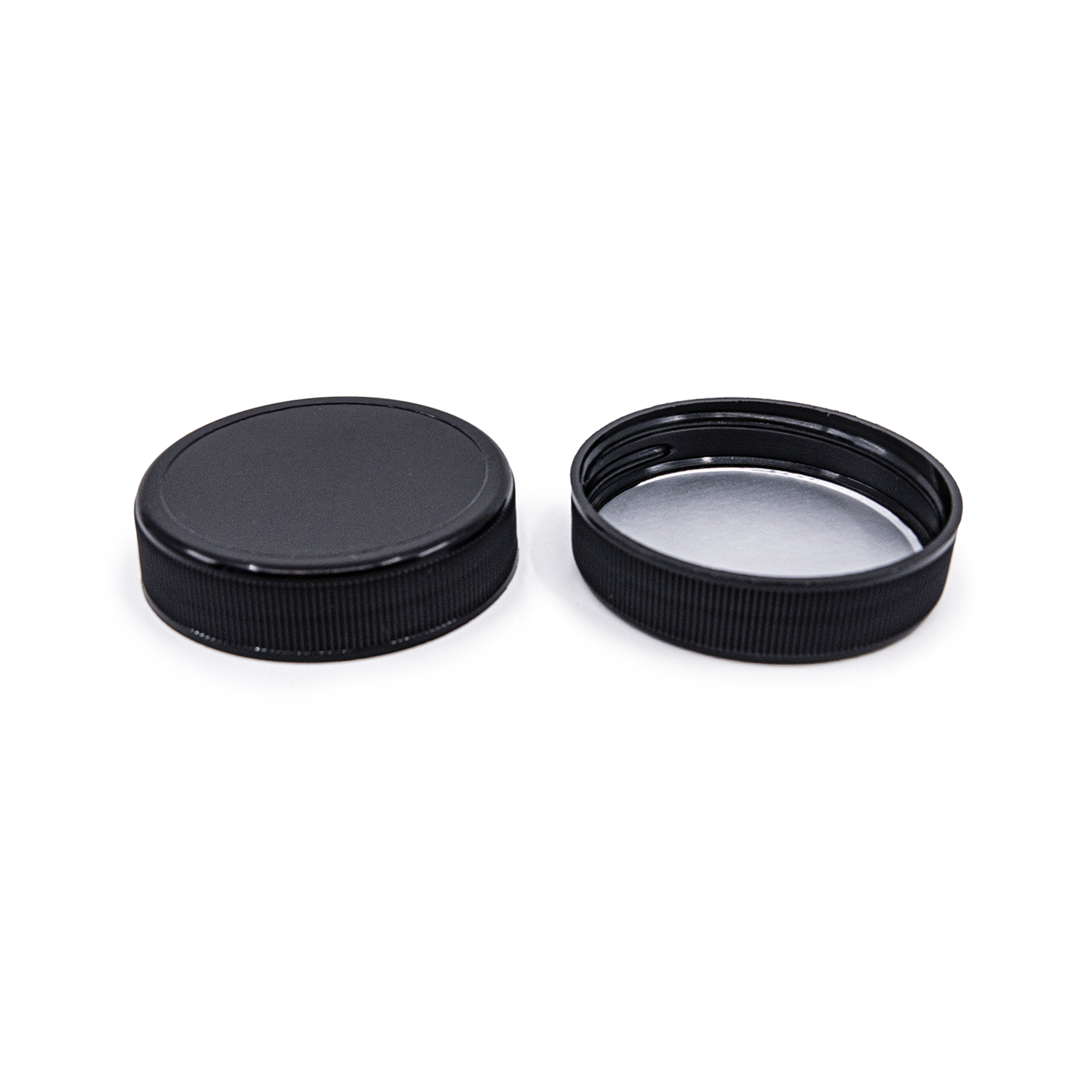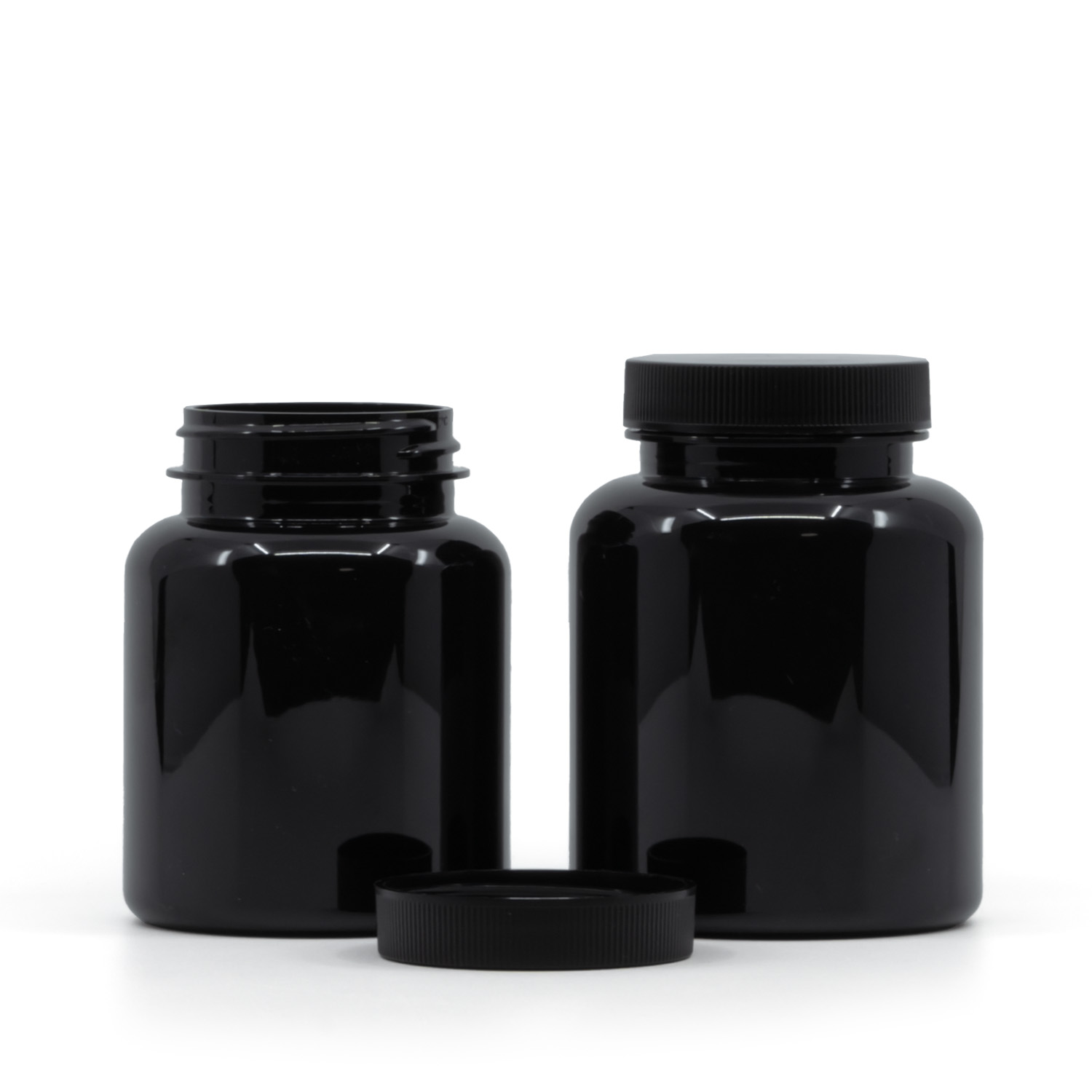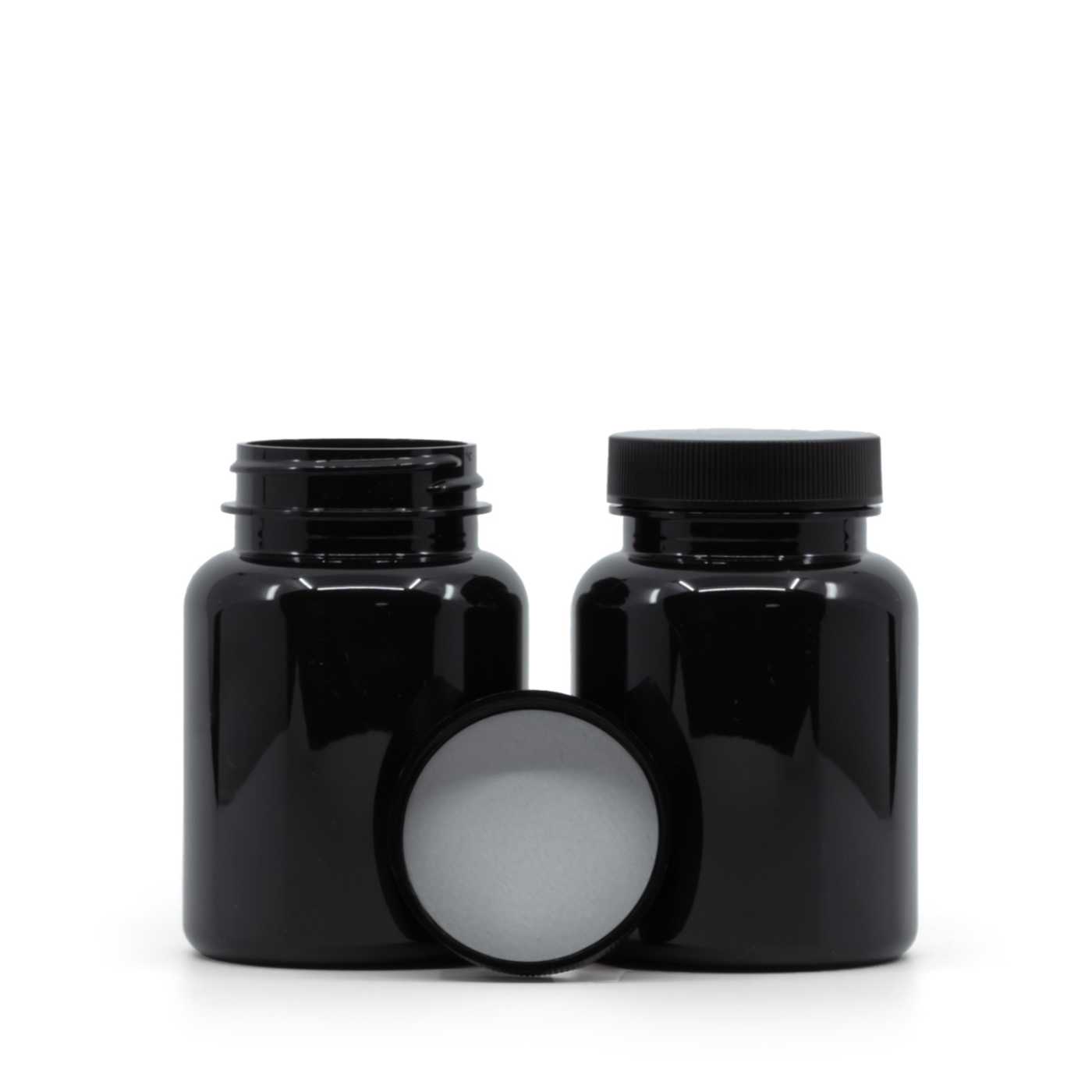 Pilulier en plastique noir, couvercle noir, Induction Innerseal, 150 ml