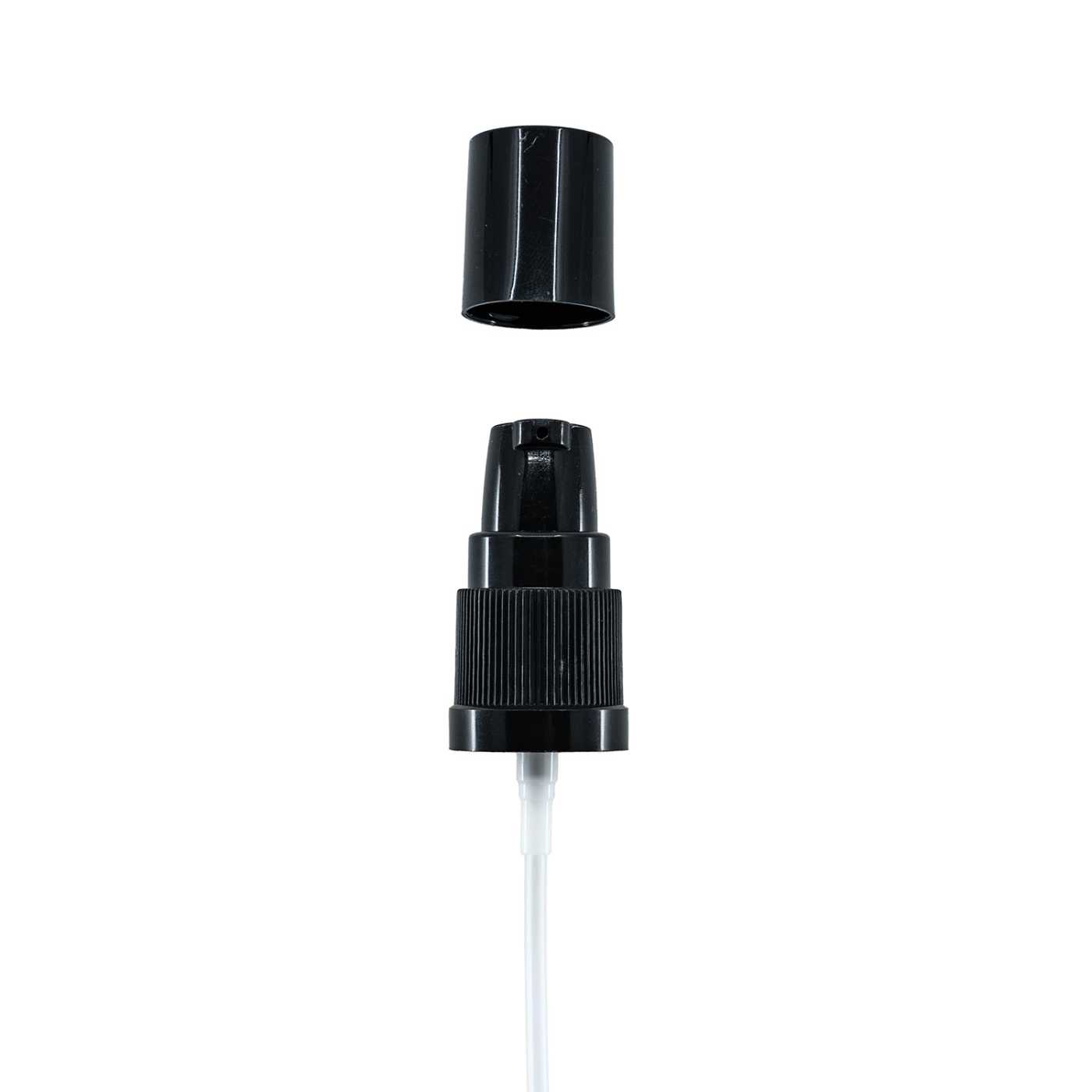 Distributeur de crème en plastique noir avec bouchon opaque noir. Il convient à tous nos flacons en verre.