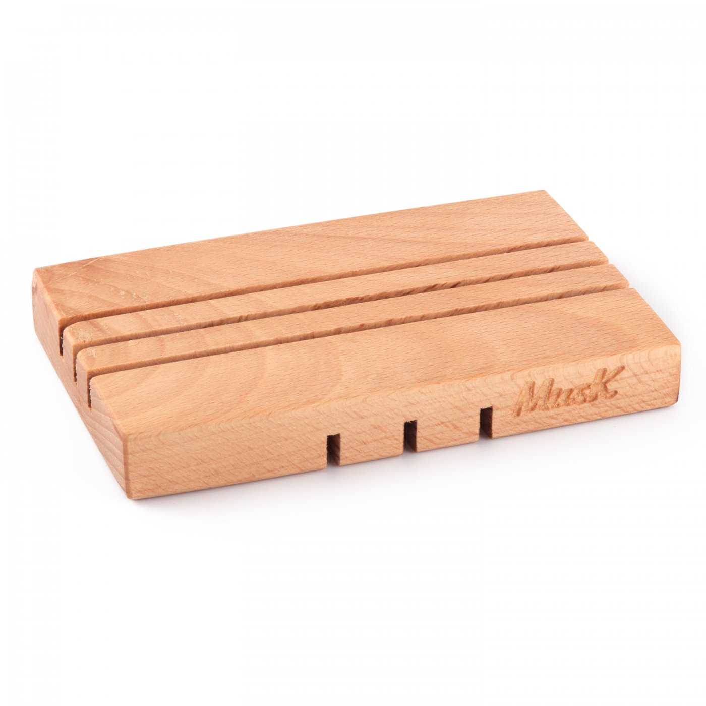 Porte-savon en bois de hêtre imprégné d'huile de lin pour assurer l'imperméabilité.Le porte-savon convient pour 1 à 2 pièces de savon MusK en combinaison avec 1... read more