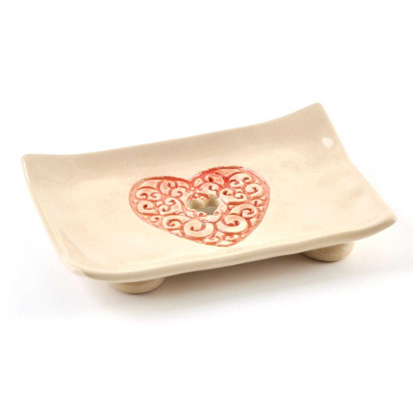 Porte-savon en céramique, cœur rouge