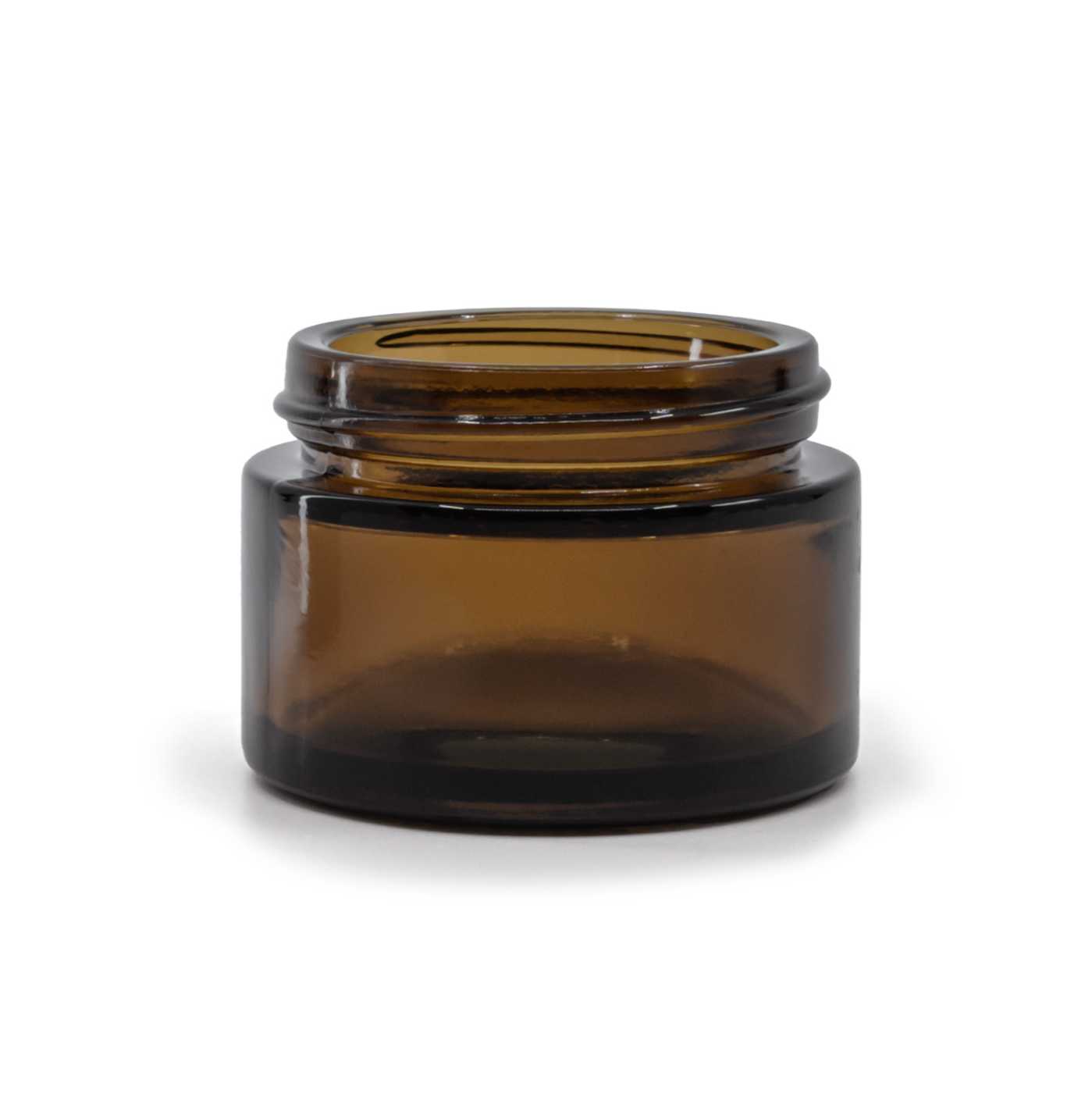 Élégant pot en verre épais brun foncé, adapté à la conservation de crèmes, d'onguents, d'émulsions ou de sérums. Il convient également à la fabrication de bougies.