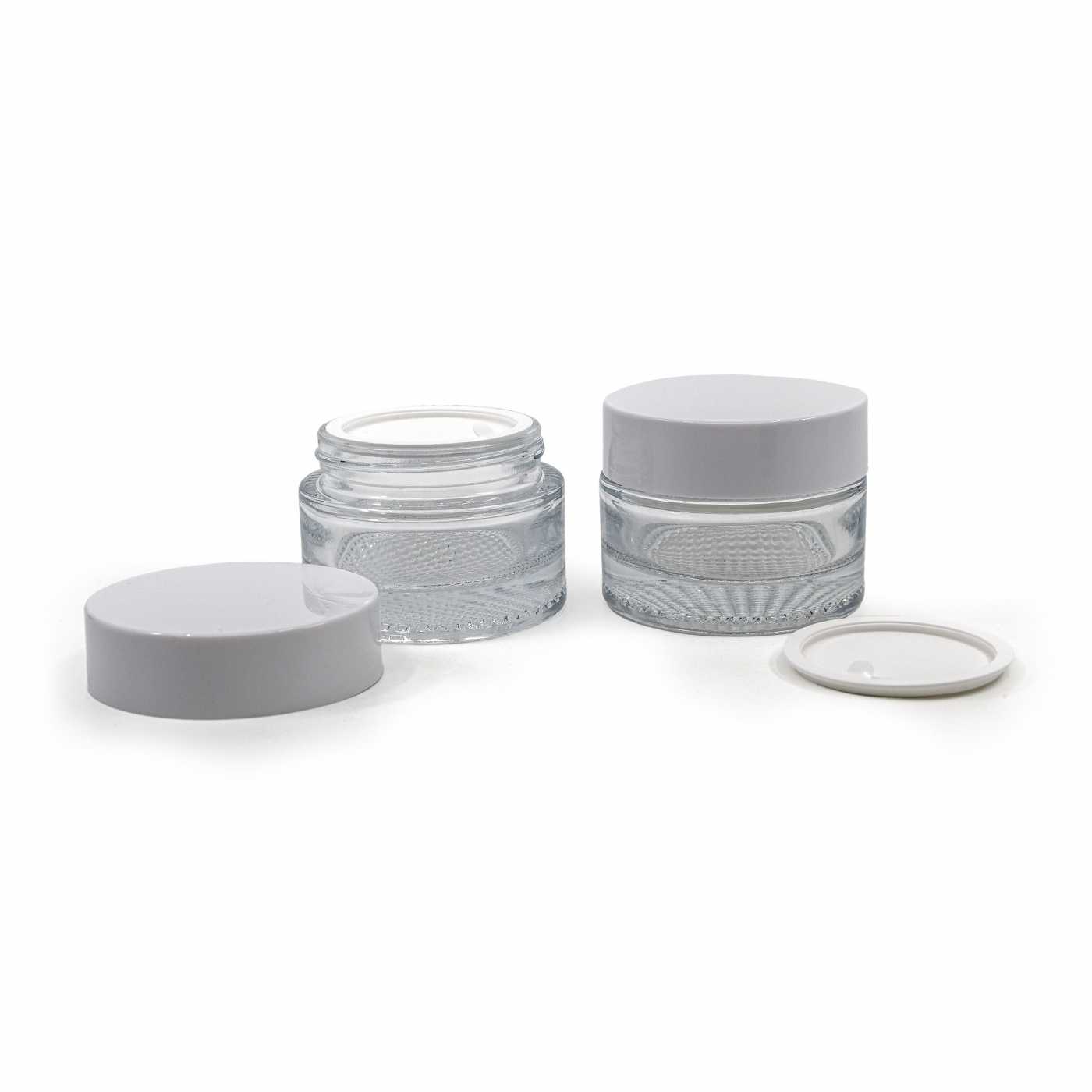 Pot à cosmétiques épais en verre transparent, couvercle et joint en plastique blanc, 50 ml