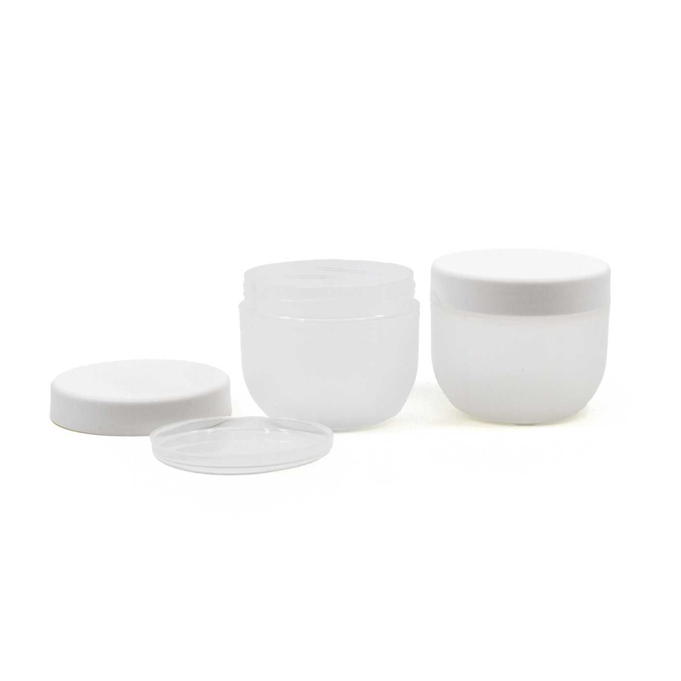 Pot en plastique givré, bouchon et joint blancs, 200 ml