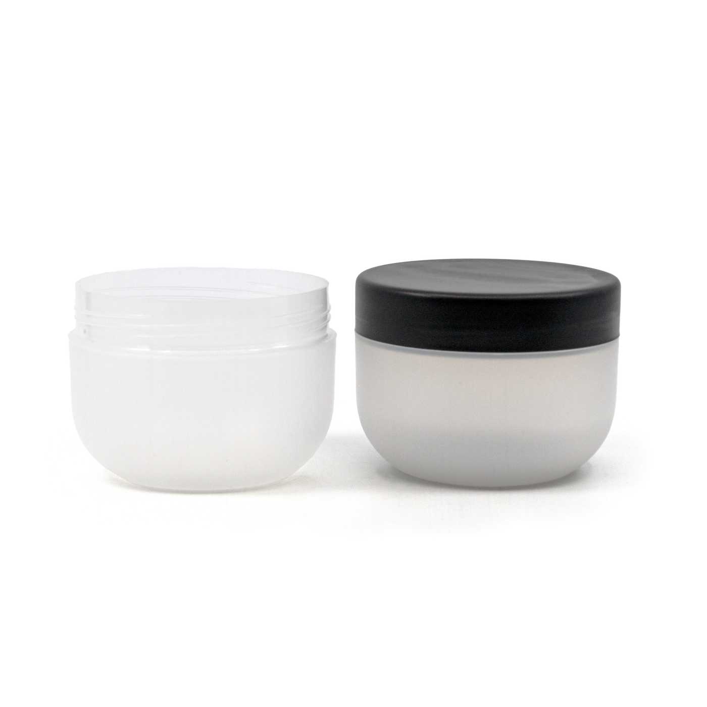 Pot en plastique givré, bouchon et joint noirs, 200 ml