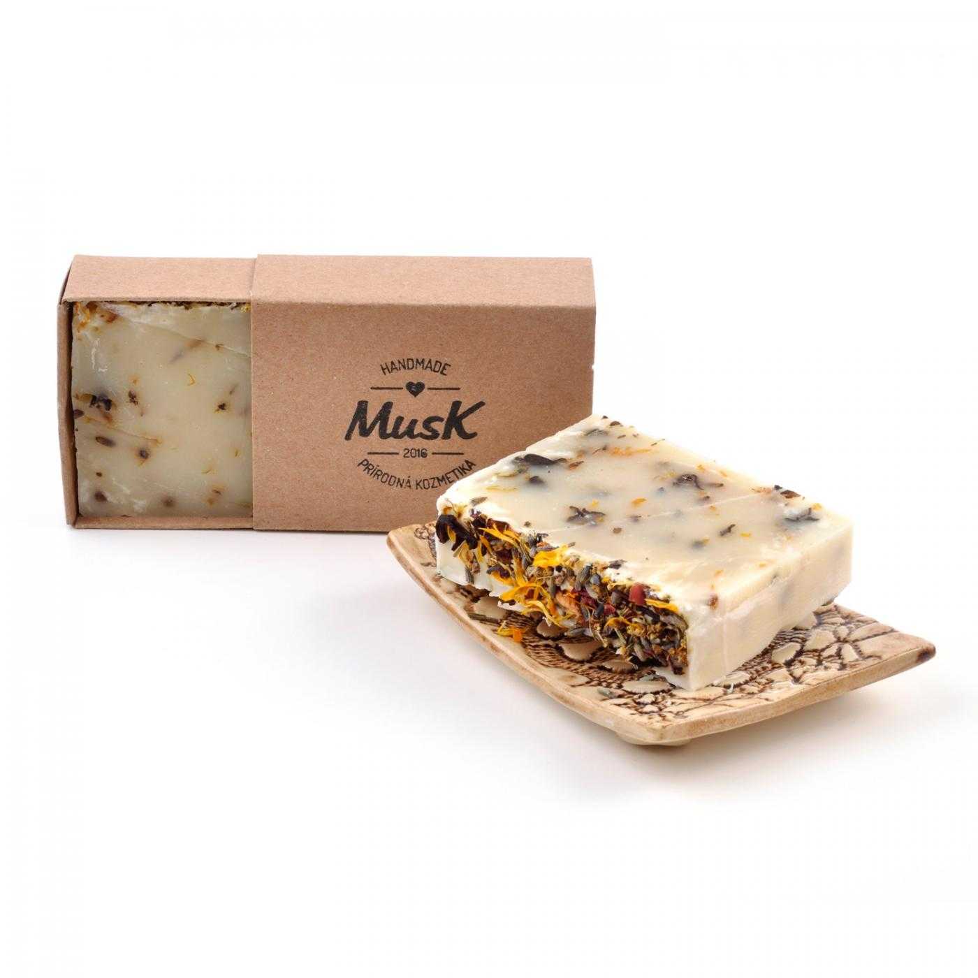 Les herbes séchées contenues dans le savon peuvent le rendre un peu rude, surtout lorsqu'il est utilisé sous la douche. Toutefois, cette sensation n'est pas désagréable et ne dure que pendant les 1 à 2 premiers lavages, jusqu'à ce que les herbes aient absorbé l'humidité et se soient adoucies. Ensuite, l'effet exfoliant de ce savon est très agréable :).La combinaison d'huiles choisies avec précision garantit une mousse riche et crémeuse, et les huiles essentielles ajoutées laissent un parfum délicat sur votre peau. Nous sommes partisans de la règle selon laquelle moins c'est parfois plus et c'est pourquoi vous ne trouverez pas de savons lourdement parfumés ici, mais des fragrances naturelles subtiles.Ce savon sera plus efficace si vous le gardez bien sec entre les lavages. Il est facile à suspendre à un porte-savon ou à un aimant, à un filet ou à une ficelle. Vous obtiendrez ainsi un savon qui durera plus longtemps et qui prolongera votre plaisir à l'utiliser.Tous nos savons sont fabriqués à la main selon un procédé à froid. Il s'agit de la méthode traditionnelle de fabrication du savon, qui consiste à mélanger des huiles et des beurres à une solution d'hydroxyde de sodium, ce qui provoque une réaction chimique appelée saponification. Les savons sont ensuite enrichis d'herbes, d'huiles essentielles, de vitamines, de colorants, d'argiles cosmétiques et de divers autres ingrédients. Chaque savon doit vieillir à l'air, idéalement pendant au moins 4 semaines, jusqu'à ce qu'il atteigne le bon pH avant d'être emballé et expédié.Les savons sont fabriqués en petites quantités, de sorte que chaque lot peut varier légèrement en termes de design, de couleur ou de parfum.Tous nos savons sont fabriqués en Slovaquie et ont subi avec succès des tests microbiologiques et dermatologiques. Ils répondent à toutes les exigences législatives relatives aux produits cosmétiques, nous avons obtenu une évaluation de la sécurité des produits cosmétiques et les savons sont également notifiés sur le portail du CPNP.Les dimensions du savon sont d'environ 8 x 6 x 2,5-3 cm.Le poids du savon est de 100g ± 5g.Composition du savon (INCI) :Sodium Oleate (huile d'olive saponifiée), Sodium Cocoate (huile de coco saponifiée), Sodium Sunflower Seedate (huile de tournesol saponifiée), Sodium Cocoa Butterate (beurre de cacao saponifié), Glycérine (glycérol), Pelargonium Graveolens Flower Oil (EO geranium), Lavandua Angustifolia Oil (EO lavender), Cymbopogon Martini Oil (EO palmarosa), Aqua (water), Sambucus Nigra Flower (Black Elderflower), Jasminum Fruticans Flower (Jasmine Flower), Lavandula Angustifolia (fleur de lavande), Calendula Officinalis (fleur de calendula), Paeonia Officinalis (fleur de pivoine), Rosa Canina (fleur de rose), Geraniol**, Linalool**, Citronellol**, Citral**, Limonene**, Farnesol**, Eau de Toilette**, Eau de Toilette**, Eau de Toilette**, Eau de Toilette**, Eau de Toilette**, Eau de Toilette**, Eau de Toilette**, Eau de Toilette**, Eau de Toilette**, Eau de Toilette**, Eau de Toilette**, Eau de Toilette**** naturellement contenues dans les huiles essentielles